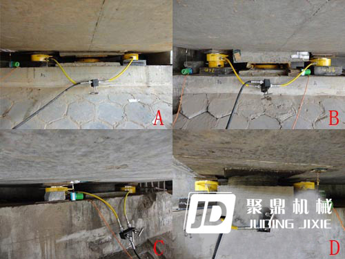 首先我司工作人員對鎮(zhèn)江路段橋梁的跨距、每跨的梁片數、梁片的結構形式以及橋梁的高度進行現場現場勘察。并查看相關圖紙核實橋梁縱向連續(xù)梁片數,從而初步計算出梁體重量及荷載能力。然后經過測量梁片與墩臺之間的實際距離,研究放置千斤頂的位置及臨時支撐位置。討論現場施工操作人員、觀察人員的位置以及整個施工環(huán)境。